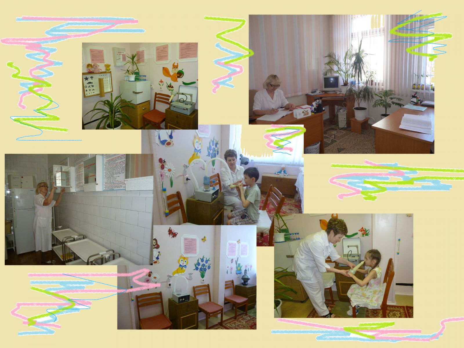 - кабинет врачебного осмотра (осмотр детей, работа с документацией, рабочее место старшей медицинской сестры и врача);