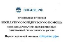 В Республике Татарстан можно получить бесплатную юридическую помощь через государственный электронный сервис Минюста России портал правовой помощи "Вправе.рф"
