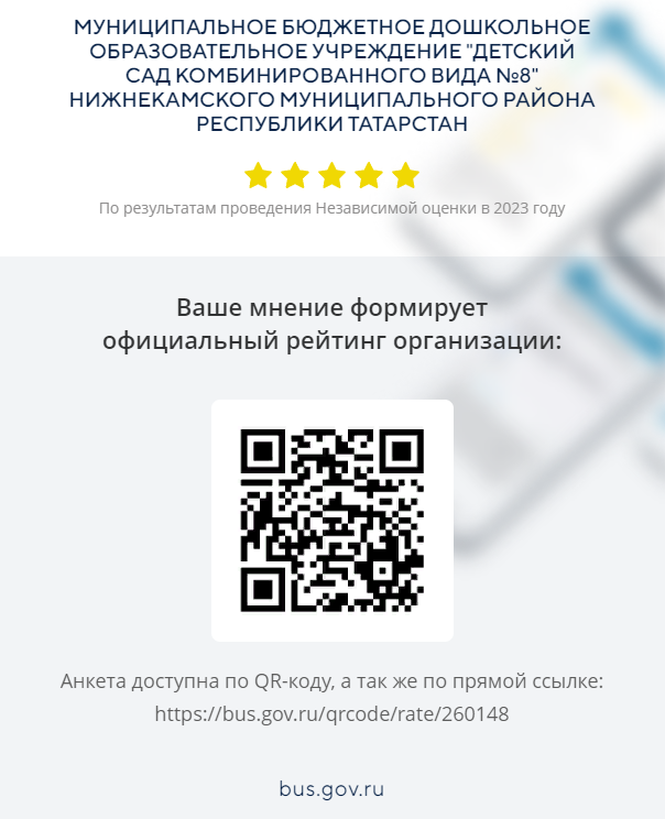 | Короткое название: | МБДОУ «Детский сад комбинированного вида №8" НМР РТ |