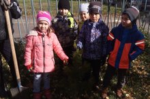 В нашем детском саду, вместо шин, на игровых площадках, появились новые насаждения. Воспитанники старшей группы участвовали в посадке сосен.