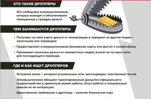Дропперы, или дропы, – это люди, которых мошенники используют для обналичивания или перевода украденных денег. Они выступают в роли посредников, предоставляя свои банковские счета или карты для получения и дальнейшего перевода средств, добытых преступным путем. Зачастую дропперы не являются инициаторами мошенничества, а становятся участниками схемы за вознаграждение, не понимая до конца всей серьезности своих действий.