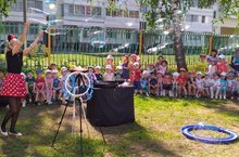 Пускание мыльных пузырей – одна из самых незатейливых, но при этом самых весёлых детских забав. И, конечно, лучше всего эта затея подходит для прогулок на свежем воздухе: ветерок помогает выдувать и отправлять в путешествие разноцветные мыльные шарики. Вот и у нас в саду прошел веселый праздник мыльных пузырей. На шоу детям показали маленькие , большие и совсем огромные пузыри. Ребята были в восторге от увиденного.