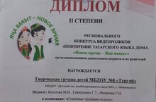Поздравляем творческую группу детского сада с призовым местом в региональном конкурсе видеороликов , "Повторение татарского языка дома". "Новое время. Яна вакыт" в номинации "Семейные традиции отдыха". Молодцы. Булдырасыз. Горурланабыз!!!