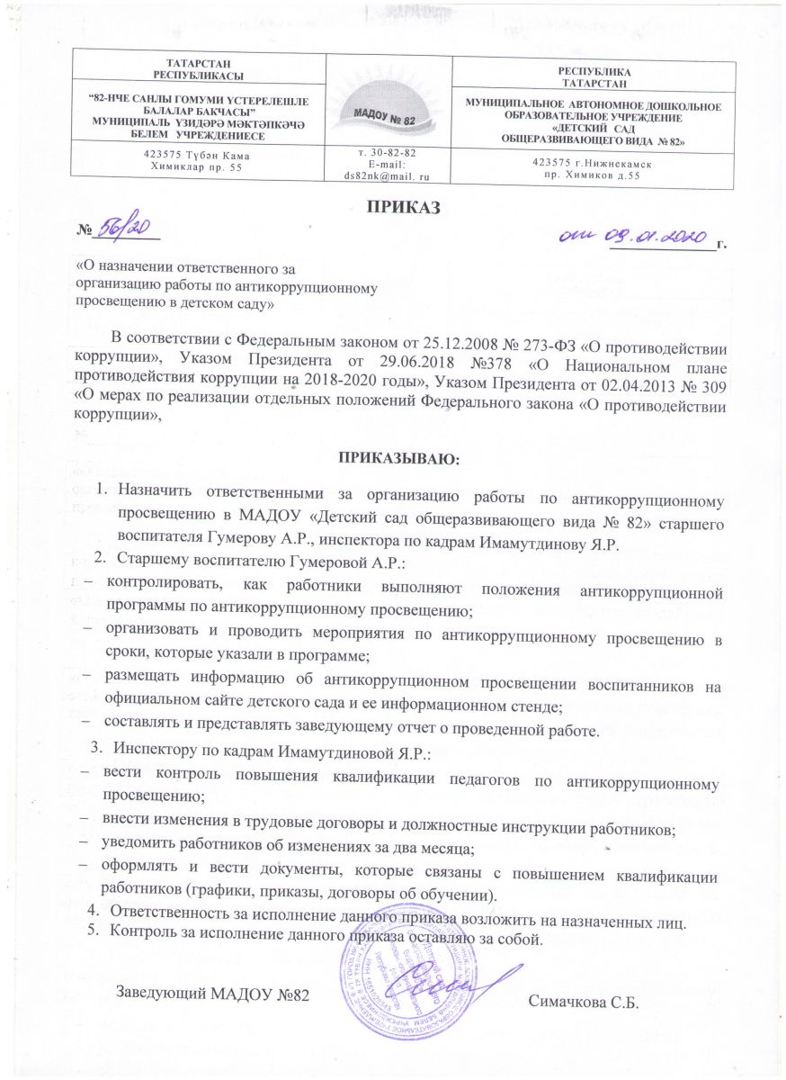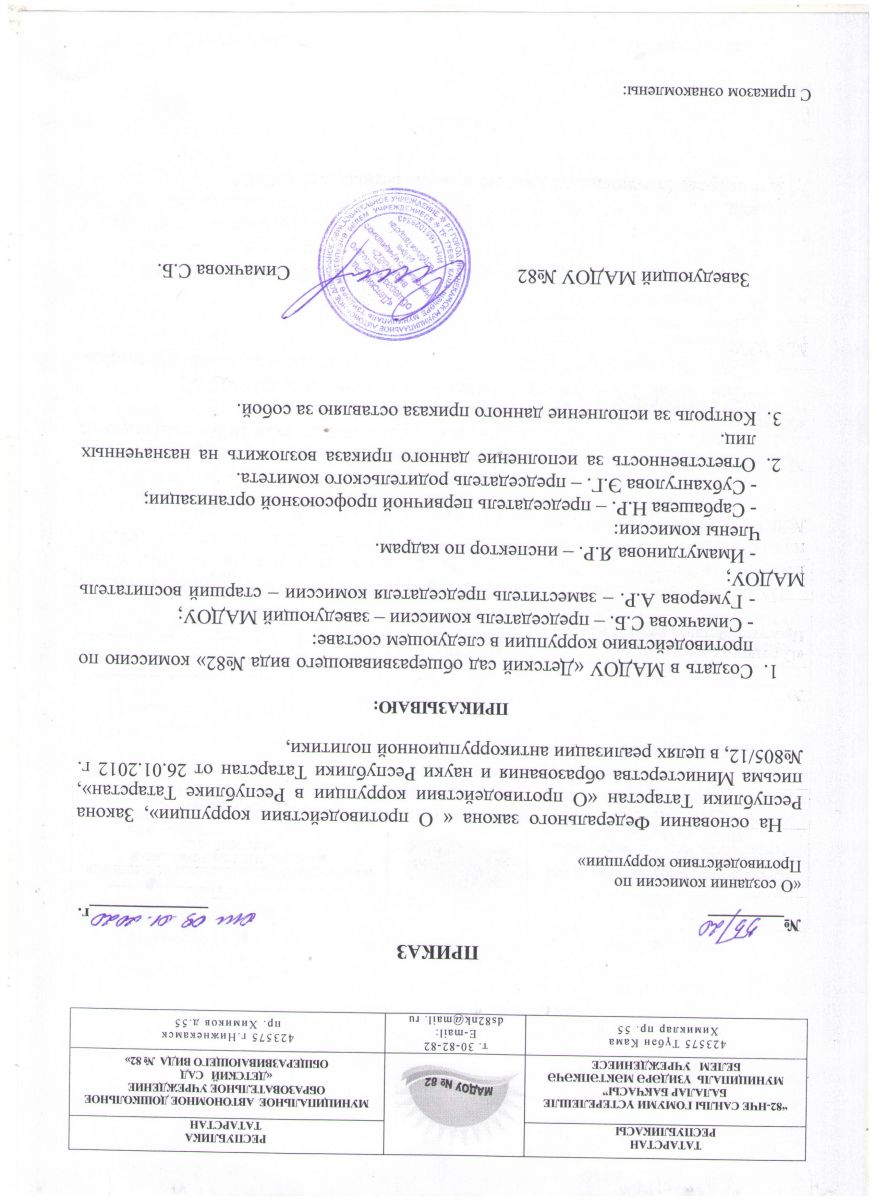 Приказ №55/20 "О создании комиссии по Противодействию коррупции"