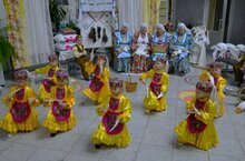 Менә бүген Халыклар дуслыгы йортында, татар халкының борынгы гореф- гәдәтләрен искә тошерү максатынан “Каз өмәсе” йоласын , безнең балалар бакчасының кечкенә артистлары һәм остазлары Муса Җәлил исемендәге гимназия укучыларына тәкъдим иттеләр. -