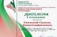 Международный литературный конкурс «Джалиловские чтения», посвященный 115 летию М.Джалиля, в этом году прошул в третий раз. На международный литературный конкурс чтецов «Джалиловские чтения» в Татарстане в этом году поступило более 40 тысяч заявок. В этом конкурсе приняли участие педагоги, воспитанники нашего детского сада. Гузель Хаметхафизовна, воспитатель подготовительной к шк группы ДОУ № 83, была награждена ДИПЛОМОМ I степени за победу в муниципальном туре г. Нижнекамск и НМР РТ. Поздравляем!