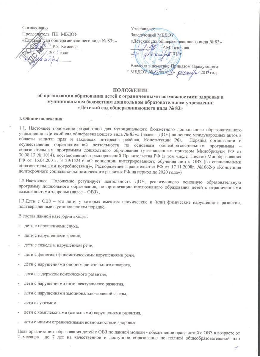 Положение об организации образования детей с ограниченными возможностями здоровья в МБДОУ №83