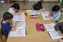 Воспитанники пилотной группы Движения первых с удовольствием работают в рабочих тетрадях "Путешествие начинается". Тема "Спорт" знакомо с ранних лет, дети знают, что спорт — это здоровье, он нужен не только спортсменам, но и всем людям, закрепили виды спорта и рассказали о своём любимом виде спорта.