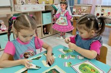 В рамках недели национальной культуры, воспитанники группы №6 познакомились с бытом и культурой русских и татарских народов. Играли в дидактические игры "Собери матрёшку", "Народные промыслы", "Бу нинди әкият?"