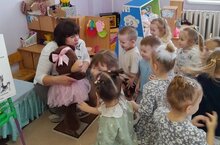 "Иҗади отчет шөгыльләре" атналыгы кысаларында 1 нче төркемдә "Аюның туган көненә күчтәнәч" исемле әвәләү шөгыле оештырылды. Шөгыль барышында балалар "Өч аю" әкиятен тыңладылар, "Кем аюны уятты" уенын уйнадылар, пластилинны учта әвәләп "күчтәнәч - печеньелар" ясадылар.