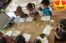 В рамках тематической недели "Ходит осень по дорожкам", воспитанники группы №11 познакомились с нетрадиционной техникой рисования "Отпечаток" с помощью листьев разных деревьев. -