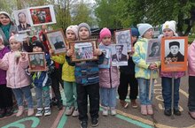 Дети и сотрудники прошли колонной по территории детского сада, маленькие ручки с гордостью и благодарностью несли портреты своих героических родственников. Таким мероприятием мы призываем хранить память о Великой Отечественной войне, о тех, кто освобождал Родину, кто не жалел своей жизни в борьбе с врагом: о ветеранах, фронтовиках, тружениках тыла, взрослых, молодежи, детях.