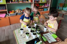 Воспитанники группы №5 решили посадить цветы, чтобы потом высадить их на клумбу своего участка.