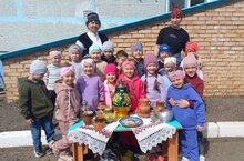 К нам в гости прилетел грач, который поиграл с детьми в подвижные татарские народные игры. Из собранных продуктов "әби" и "бабай" приготовили вкусную кашу для коллективного угощения.