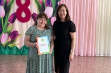 Сегодня, 6 марта, в преддверии празднования Международного женского дня, в нашем детском саду чествовали младшего воспитателя Гульсиру Мухамметвалиевну. Салимова Г.М. награждена Почётной грамотой Управления дошкольного образования Исполнительного комитета Нижнекамского муниципального района Республики Татарстан "За значительные достижения в области дошкольного образования, большой вклад в дело воспитания и оздоровления подрастающего поколения".