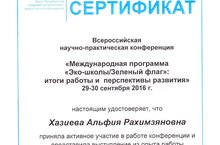 29-30 сентября 2016 года в городе Санкт-Петербурге прошла Всероссийская научно-практическая конференция по международной программе "Эко-школы/Зелёный флаг":итоги работы и перспективы развития". Заведующий Хазиева А.Р. приняла активное участие в работе конференции и представила выступление из опыта работы.