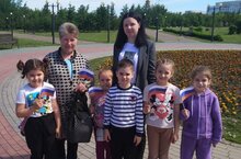 Дети старших групп в рамках акции «Россия рисует» изготовили флажки и поздравили жителей микрорайона в парке «Нефтехимиков»