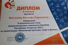 Воспитанник Мингазов Ильсаф выступил в компетенции "Физическая культура, спорт и фитнес" и занял 2 место.