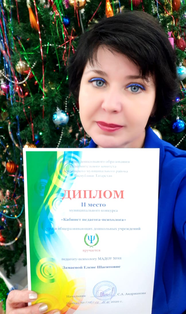 Педагог-психолог Замаева Е.Ш. заняла 2 место в муниципальном конкурсе "Кабинет педагога-психолога" среди общеразвивающих ДОУ.