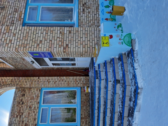 1) Вход. Доступ лиц с нарушением опорно-двигательного аппарата осуществляется через вход, оборудованный пандусами на первый этаж здания. При входе имеется табличка, выполненная плоско-выпуклым шрифтом Брайля с наименованием ДОУ, установлена «Кнопка вызова для инвалидов и лиц с ограниченными возможностями здоровья», которая обеспечивает вызов дежурного вахтера для связи с администрацией. Фотография