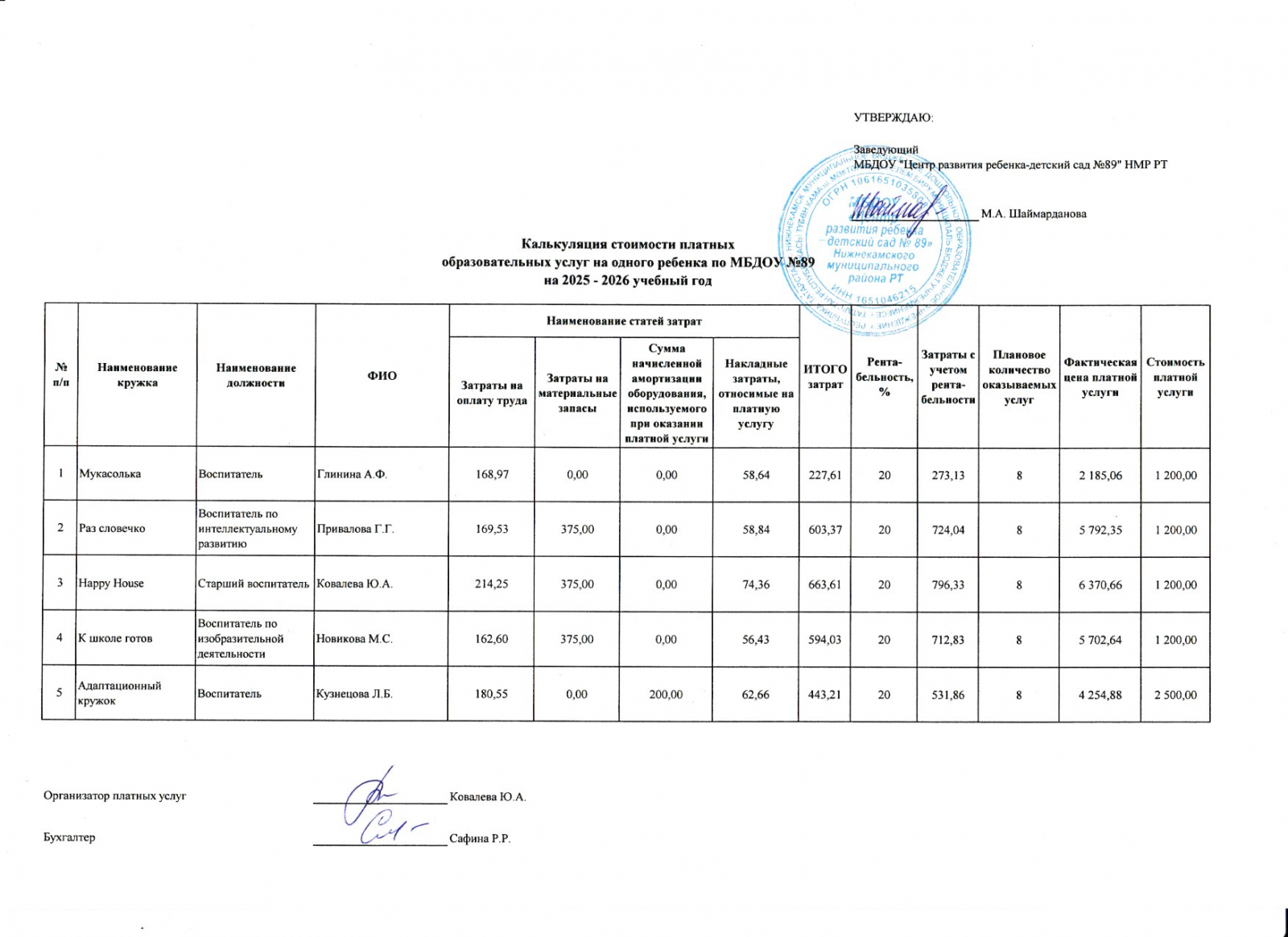 Калькуляция стоимости платных образовательных услуг 2025-2026 учебный год