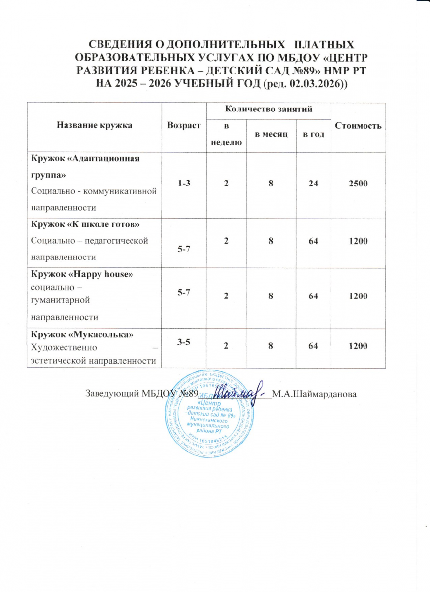 Сведения о дополниттельных образовательных услугах на 2025-2026 учебный год (02.03.2026)