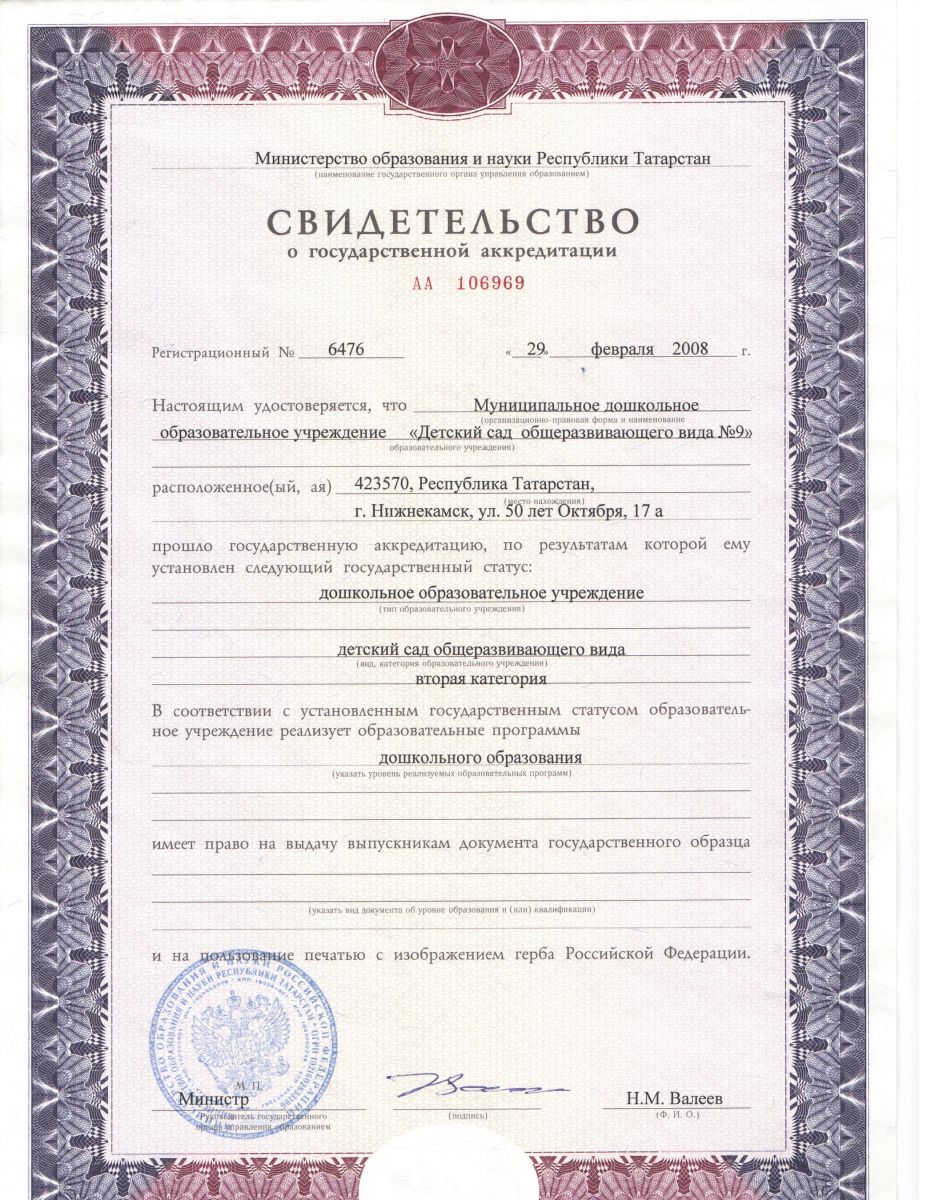Устав МБДОУ Детский сад комбинированного вида №9 НМР РТ