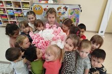В детском саду этот праздник отметили с удовольствием. Ребята узнали, что Дедушка Мороз живёт в своём тереме в Великом Устюге, готовит подарки для детей к Новому году. Встреча с именинником торжества была восторгом для детей. Ребята спели песню "Как у Дедушки Мороза, вот такая борода", "Каравай", для именинника приготовили подарок, разукрасили варежки и отправили ему по почте. Так же ребята отгадывали загадки. Подбирали ласковые и нежные слова для Деда Мороза. Детство-это время веры в чудеса и волшебство. Так давайте будем поддерживать это счастье в наших детях. -