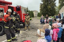 В рамках месячника «Останови огонь» в детском саду прошел ряд мероприятий по профилактике пожарной безопасности.Самой яркой и запоминающейся стала встреча с настоящими пожарными , которые приехали в детский сад на своей служебной машине. Для дошколят, приезд пожарных в детский сад стал настоящим сюрпризом. Ребята сразу обратили внимание на подъезжающую машину, но когда пожарные въехали на территорию детского сада, их восторгу не было предела.