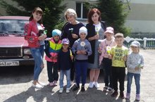 В нашем ДОУ стало доброй традицией, когда старшие дошкольники, дарят символ праздника-ромашку, прохожим людям возле ТД "Домовой". А в ответ люди улыбаются.