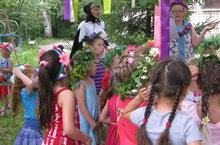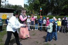 Участниками игры стали дети среднего и старшего дошкольного возраста. Идея: передвижение групп детей в сопровождении педагогов с выполнением интеллектуальных заданий на каждой станции.“Солнечный домик” – задачки-головоломки на сообразительность; станция “На неведомых дорожках” - Составить предложения по картинке на стене. Как можно больше! За каждое предложение – фишка; станция «Лесные загадки» - закрепление правил поведения в лесу; станция «Цветочная поляна» - отгадывание загадок про насекомых. Последнее задание для каждой группы находилось в конверте на последней станции :дети брали ленточки из конверта , говорили добрые слова деревьям и цветам, травке, водичке и завязывали свои ленточки на тонкое деревце , чтобы их добрые слова и пожелания исполнились.