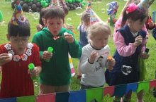 Сегодня в нашем детском саду праздник Мыльных пузырей.