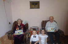 Сегодня, мы с детьми, старшей группы, ходили поздравлять ветеранов Великой Отечественной войны. Дети прочитали стихотворения о войне, а ветераны показали свои ордена и медали, рассказали, как тяжело досталась Победа.