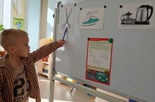 Формируя у детей осознанное и ответственное отношение к выполнению правил безопасности, на познавательных занятиях воспитателями были проведены тематические беседы: «Как вести себя в чрезвычайных ситуациях», «Один дома», «Осторожно опасный предмет», «Ребенок и огонь». С интересом ребята сами описывали картинку с опасной ситуацией, рассказывая другим детям.