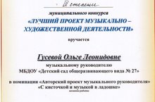 Участие педагога в муниципальном конкурсе "Лучший проект музыкально - художественной деятельности" 01.12.2017