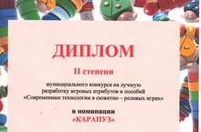 Участие педагога в муниципальном конкурсе на лучшую разработку игровых атрибутов и пособий "Современные технологии в сюжетно - ролевых играх" в номинации "КАРАПУЗ" 01.12.2017
