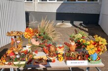 Сегодня наш сад принял участие в осенней выставке поделок в школе №21, приуроченной ко дню пожилых людей