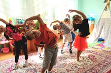 Ребята играли в разные игры, рисовали, вспомнили как можно получить оранжевый цвет, сделали оранжевую зарядку