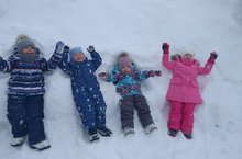 Каждый день ребята катаются на ледянках, играют в снежки, копают снег лопатами, кормят птиц, рассматривают снежное убранство деревьев и кустов... Румяные щечки, блестящие глазки и отличное настроение – такой результат прогулок зимой! -
