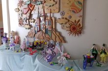 В преддверии Международного женского дня в детском саду организованна выставка. В холле наших мам и бабушек будкт встречать весенние зайцы на велосипедах. Поделки к выставке были изготовленны воспитателями всех групп.