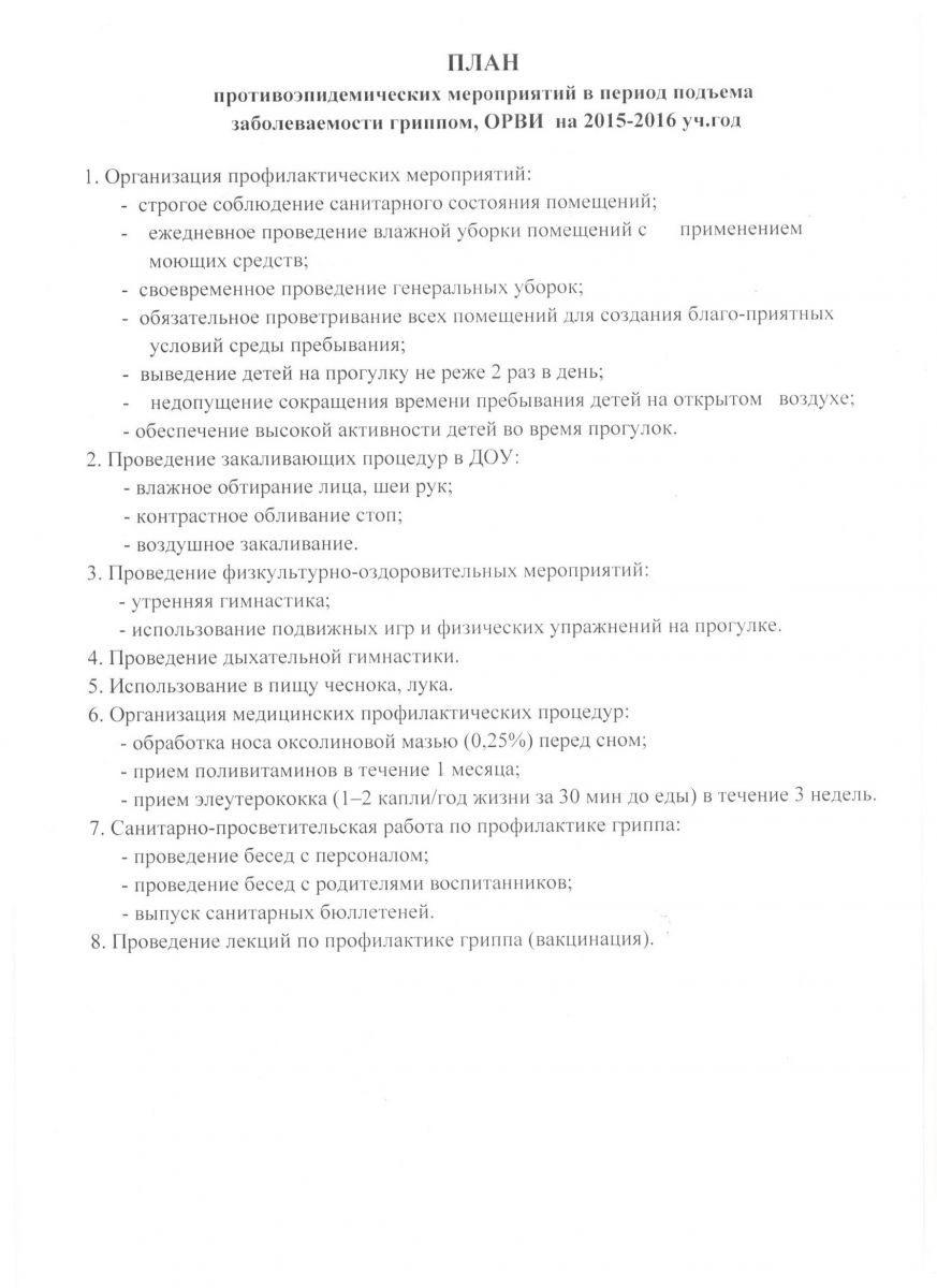 План противоэпидемических мероприятий в период подъема заболеваемости гриппом и ОРВИ