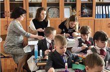 В рамках педагогической практики французские студентки посетили урок технологии «Цветок для мамы» в 1в классе, учитель Ирина Сергеевна Силина.