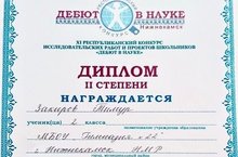 Поздравляем ученика 2б класса Закирова Тимура (руководитель Вагизова Р. Ф.) со 2 местом в Республиканском конкурсе исследовательских работ и проектов школьников «Дебют в науке»! Молодец!