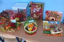 В гимназии прошел отборочный тур конкурса "Дары Осени". Осень - замечательная, вдохновляющая пора для проявления творчества, мастерства и фантазии! Дети и родители проявили фантазию и находчивость в выборе материала для работ. Все работы интересные и не похожи друг на друга.