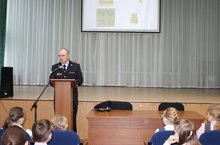 Начальник отдела ГИБДД Управления МВД России по НМР Гарипов провел внеплановый инструктаж по правилам дорожного движения для учащихся гимназии 06.05.2019