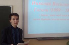В этом году отмечается 210 лет со дня рождения великого русского писателя Николая Васильевича Гоголя. В рамках декады русского языка и литературы 20 февраля Малова М. В. провела открытый урок в 9 В классе по теме "Скитальческая судьба Н.В.Гоголя". Учащиеся познакомились с основными этапами жизни и творчества писателя. Также прозвучали известные строки из его произведений.Каждый чтец смог вызвать большой интерес к личности Н.В.Гоголя.