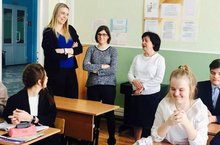 Экскурсию по школе для французских гостей провели заместитель директора по учебной работе Хабибуллина Татьяна Анатольевна и учитель французского языка Забирова Розалия Рафкатовна.