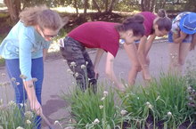 Ребята продолжают благоустраивать двор гимназии. Они пропололи огород, цветочные клумбы, убрали мусор. И для отдыха у них тоже нашлось время.
