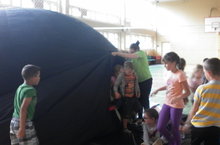 В последний день недели в лагерь «Веселый» приехал «Мобильный Планетарий». Ребята старших и младших отрядов посмотрели научно-фантастический фильм «Одинокое движение Земли», в котором рассказывалось о ледниковом периоде. Перед глазами детей, как живые, возникали мамонты и динозавры, пролетали астероиды, а также извергались вулканы.