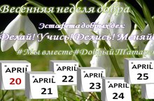 21 апреля 2015 года объявлен Днём дружбы и творчества в рамках Весенней недели добра. Сегодня учащиеся гимназии приняли участие в школьном конкурсе эмблем, символов Недели добра. В конкурсе приняли участие ребята 1-10 классов, их работами оформлены выставки. Самыми активными и творческими оказались ребята 2А класса (классный руководитель Зеленина Альфия Ирековна). Их эмблемы были не только в виде рисунков, но и в форме объемных творческих работ. Лучшие эмблемы будут отмечены дипломами.